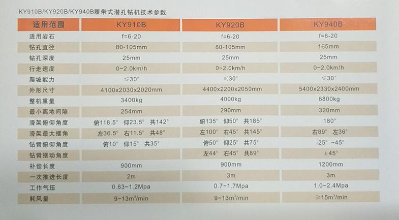 履带式潜孔钻机特点:康阳牌系列潜孔钻车采用新型液压技术,耗气量低,回转扭矩大,移孔变位方便,同时推进滑架有伸缩功能,钻孔时滑架支撑在地面上,稳定性好。该钻车主要适用于露天采矿、道路修建、水利、电站等工程方面的凿岩工作。