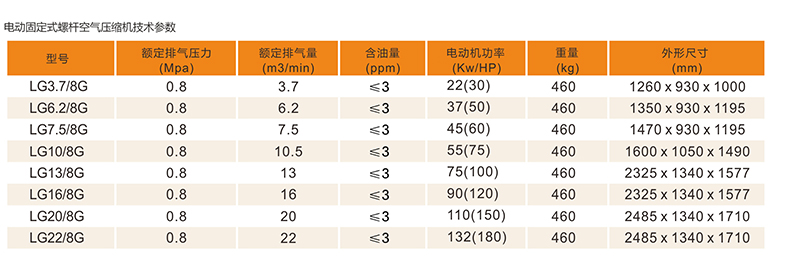 三、 全面符合GB19153-2003《容积式空气压缩机能效限定值》国家标准的要求。